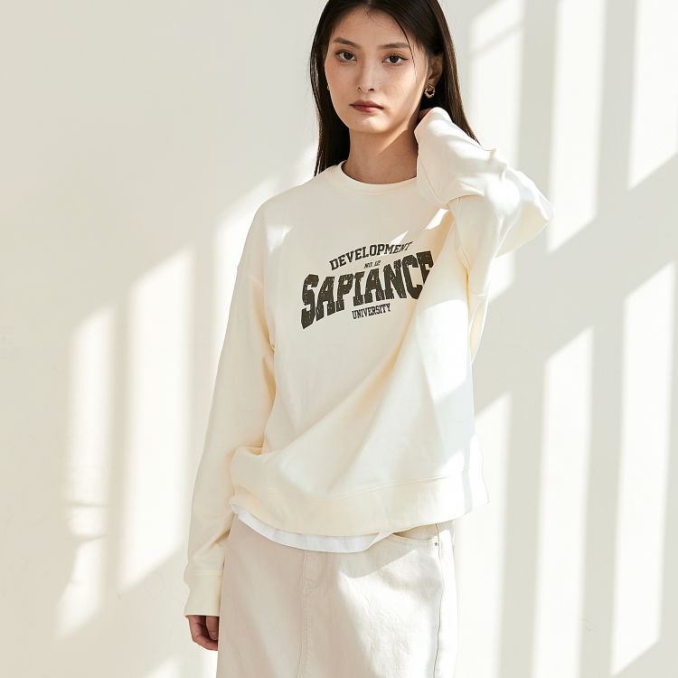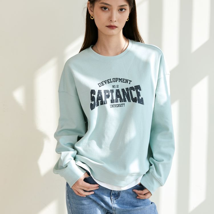 女士印花拼白边卫衣