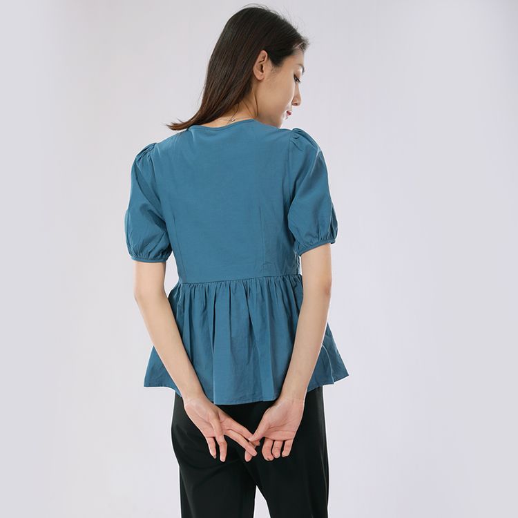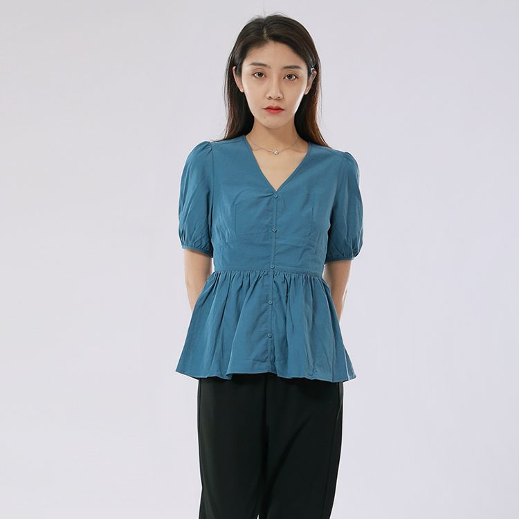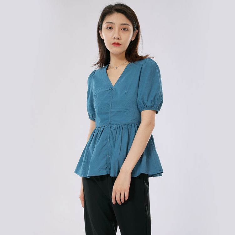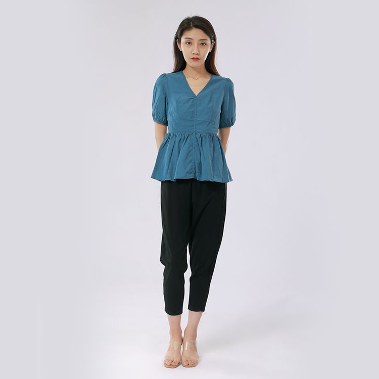 女士V领收腰短款上衣