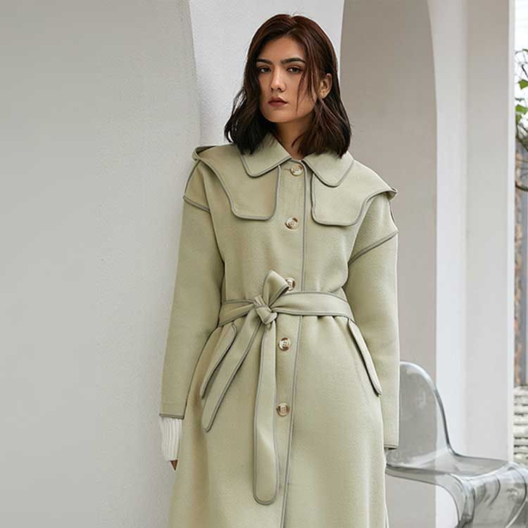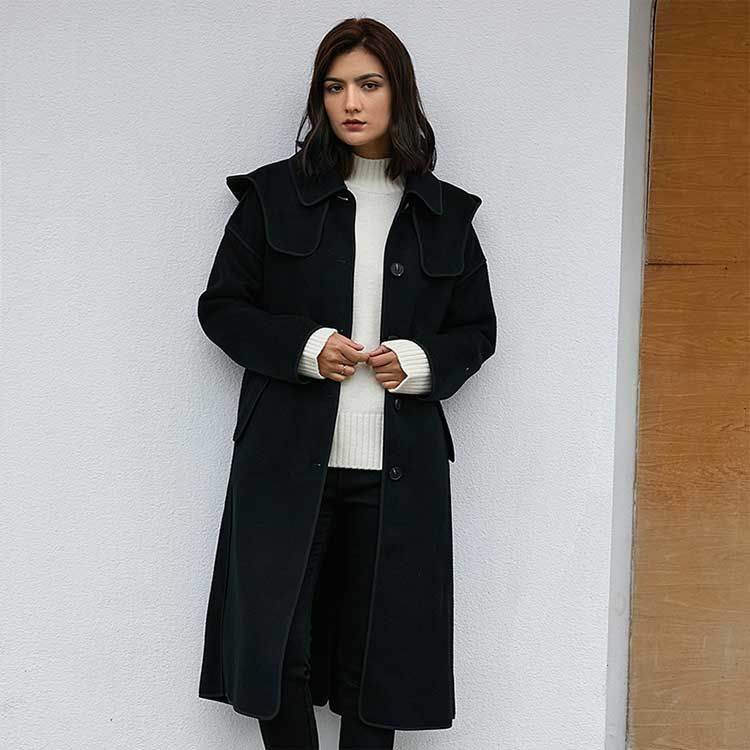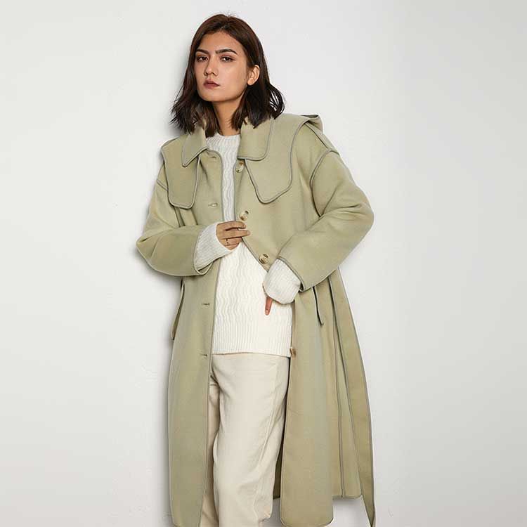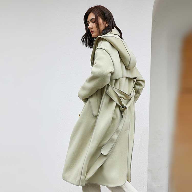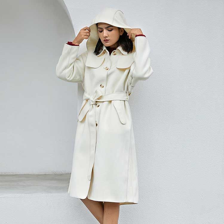 女士带帽包边羊毛大衣