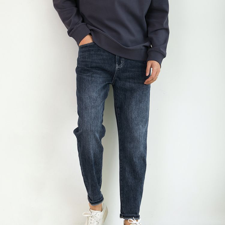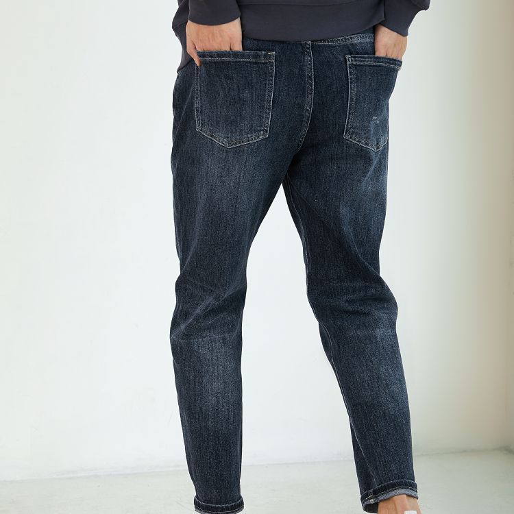 男士微阔口袋拼色牛仔裤