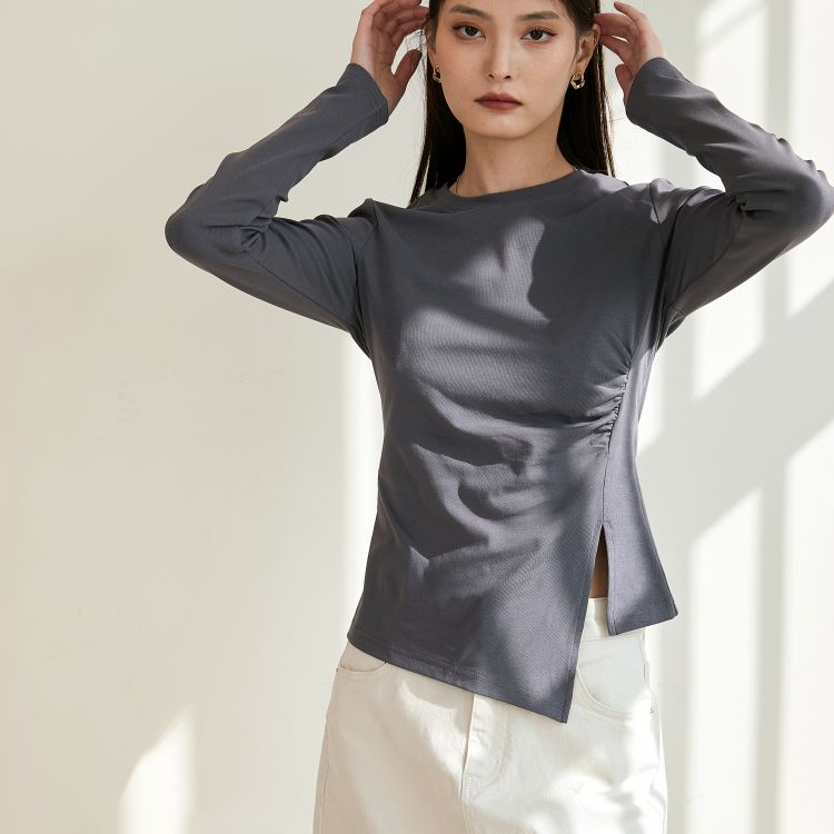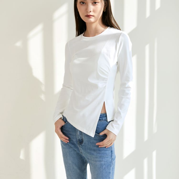 女士侧开叉长袖T恤